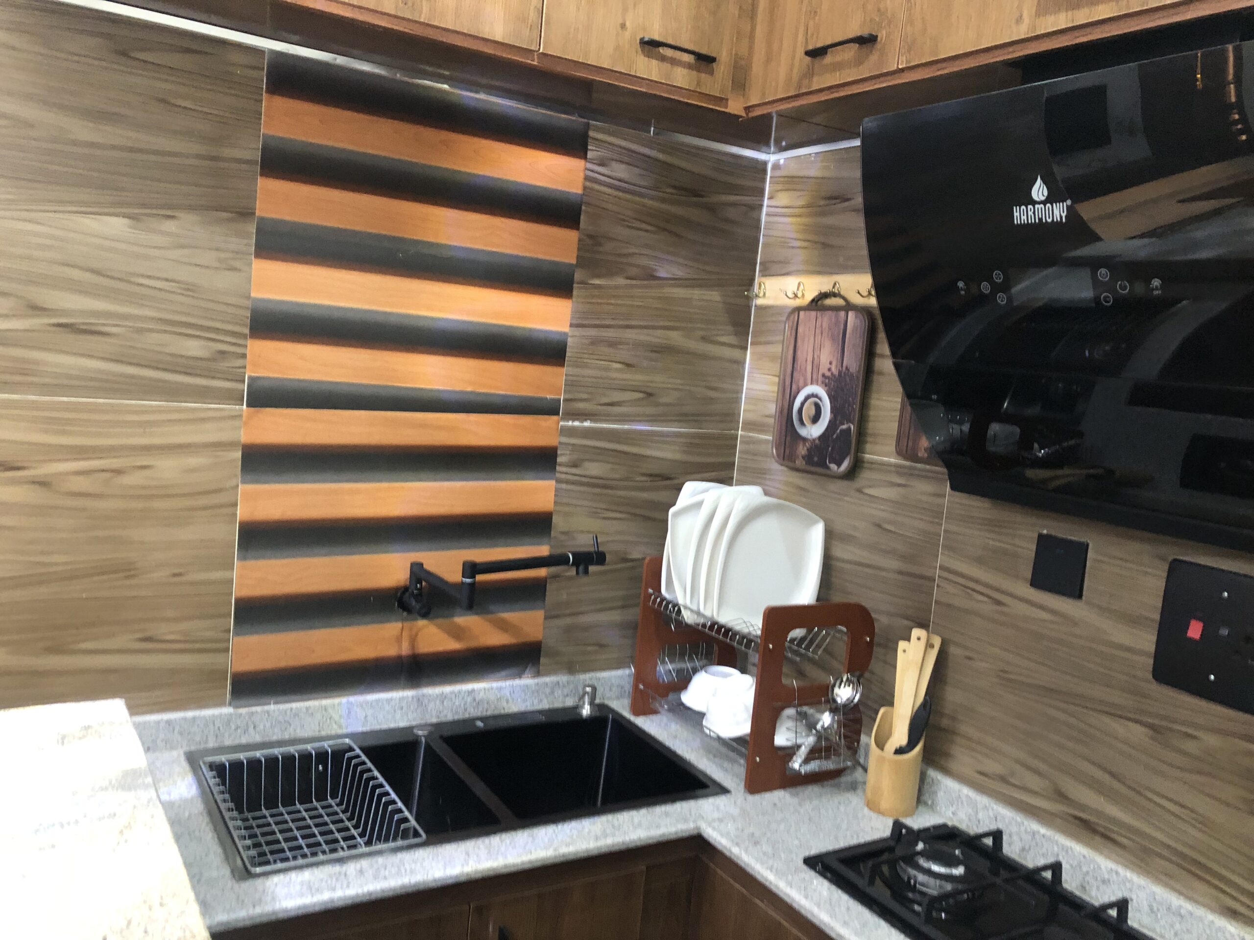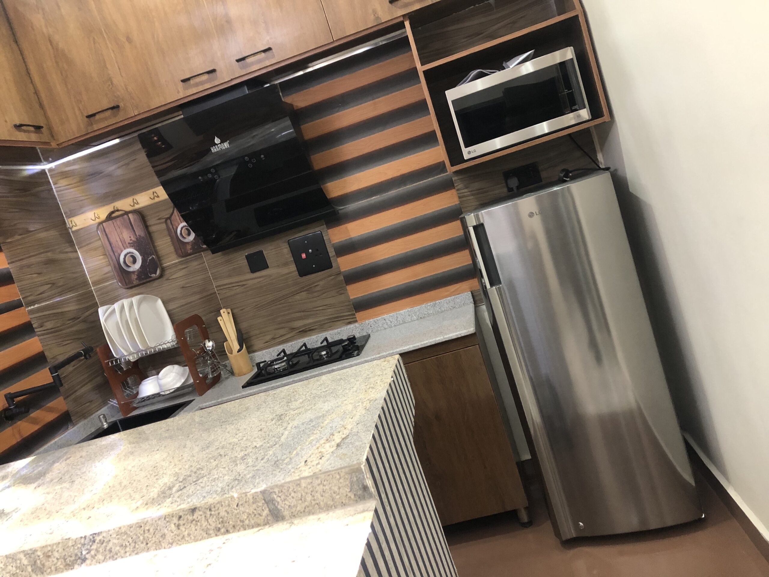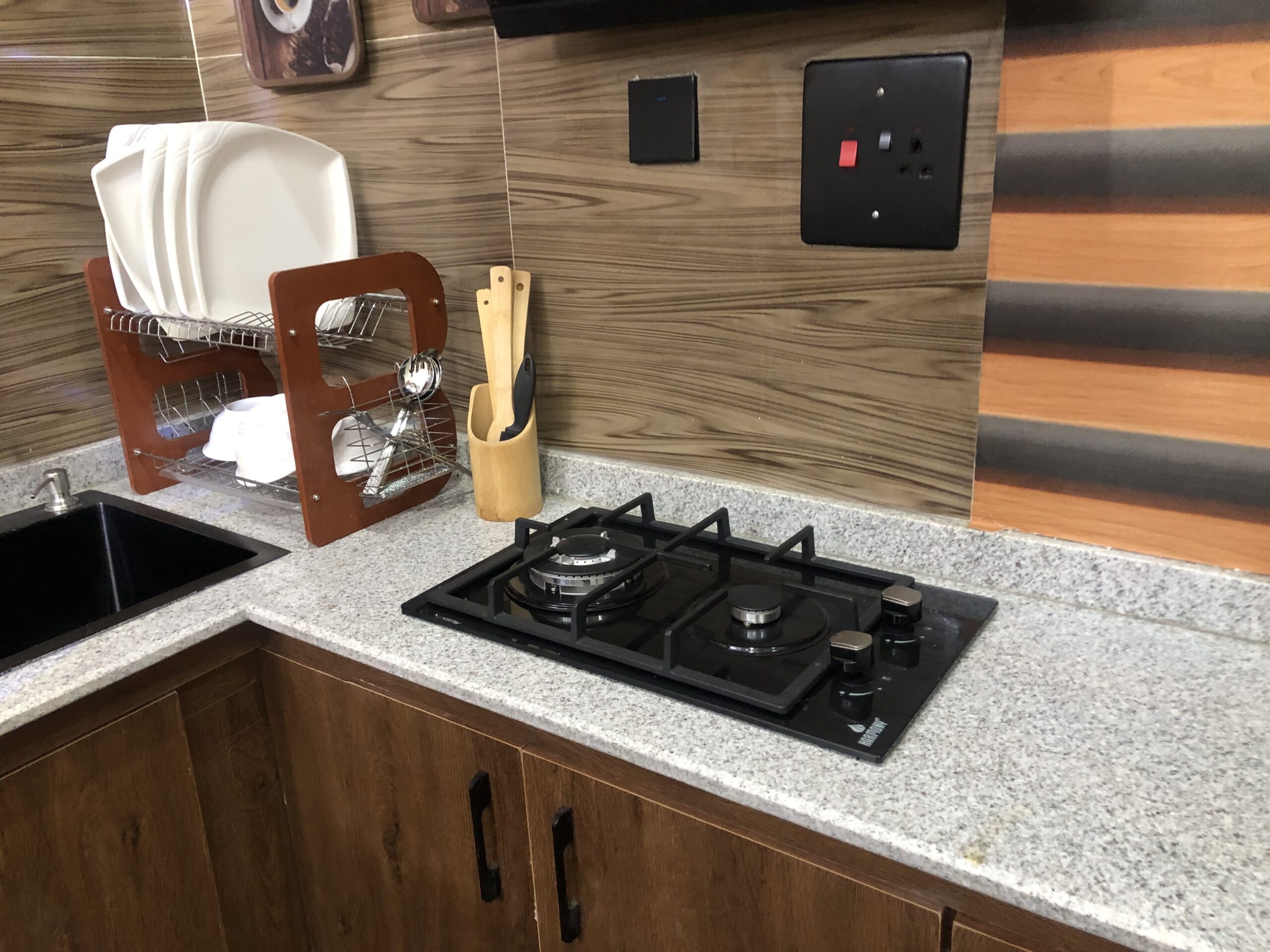 • A Chef-Ready Kitchen & Intelligent Comfort: Whip up a meal in your fully-fitted kitchen—every tool, from plates to the pot filler, is at your fingertips. Cook with ease on a modern gas burner under the smoke and heat extractor, and use the modern microwave with ease. Your climate is personal, controlled by quiet air conditioners, and your entertainment is seamless with Smart TVs in both the living room and bedroom.